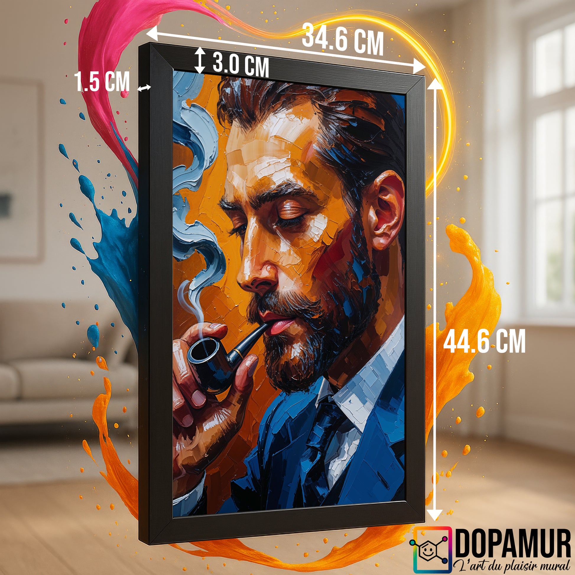 Offrez à votre intérieur une sophistication contemporaine avec ce tableau portrait signé Dopamur. Plus qu'une simple décoration, il s'agit d'une pièce unique conçue pour capturer l'essence d'une élégance masculine intemporelle. Le rendu texturé et les nuances profondes créent un jeu d'ombre et de lumière saisissant, apportant relief et caractère à votre espace. Idéal pour rehausser un bureau exécutif ou un salon moderne, ce tableau impose une présence discrète mais puissante, dialogue parfait entre force et raffinement. Pour les amateurs d'art à la recherche d'une œuvre au style affirmé, ce portrait incarne l'esprit Dopamur : l'audace esthétique au service de l'émotion.