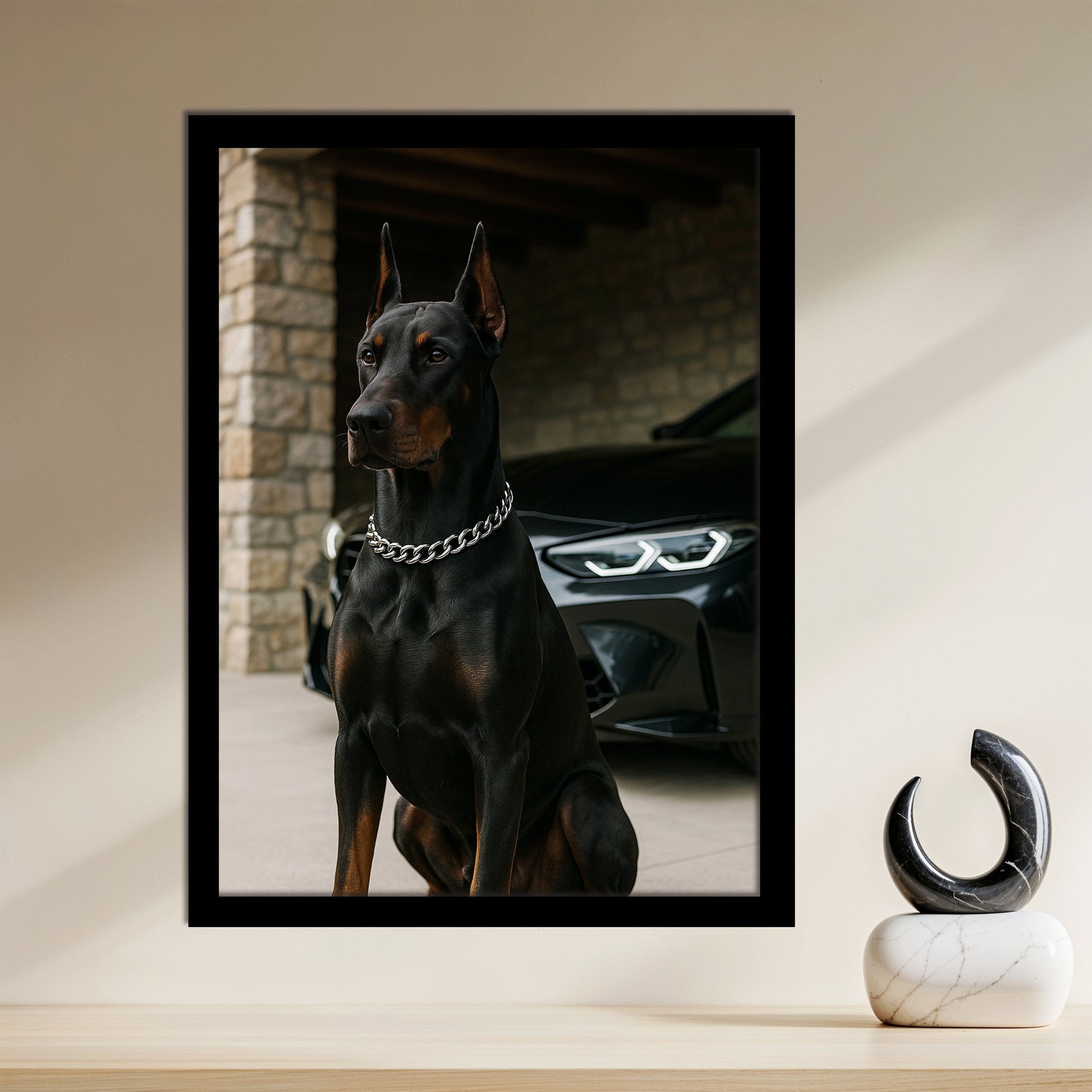 Affirmez une alliance d'exception entre puissance animale et élégance mécanique avec ce tableau exclusif Dopamur. Plus qu'une image, cette pièce unique capture l'essence du luxe contemporain, où la noblesse d'un Doberman rencontre les lignes pures d'une berline sportive. Le contraste profond et le rendu ultra-réaliste créent une atmosphère de prestige immédiat. Idéal pour ancrer un sentiment de puissance maîtrisée dans un bureau d'affaires ou un salon au design audacieux, ce tableau est une déclaration de style pour les esprits modernes qui ne transigent pas avec l'excellence. Il incarne l'esprit Dopamur : l'art qui fusionne les univers pour créer une émotion forte et distinctive.