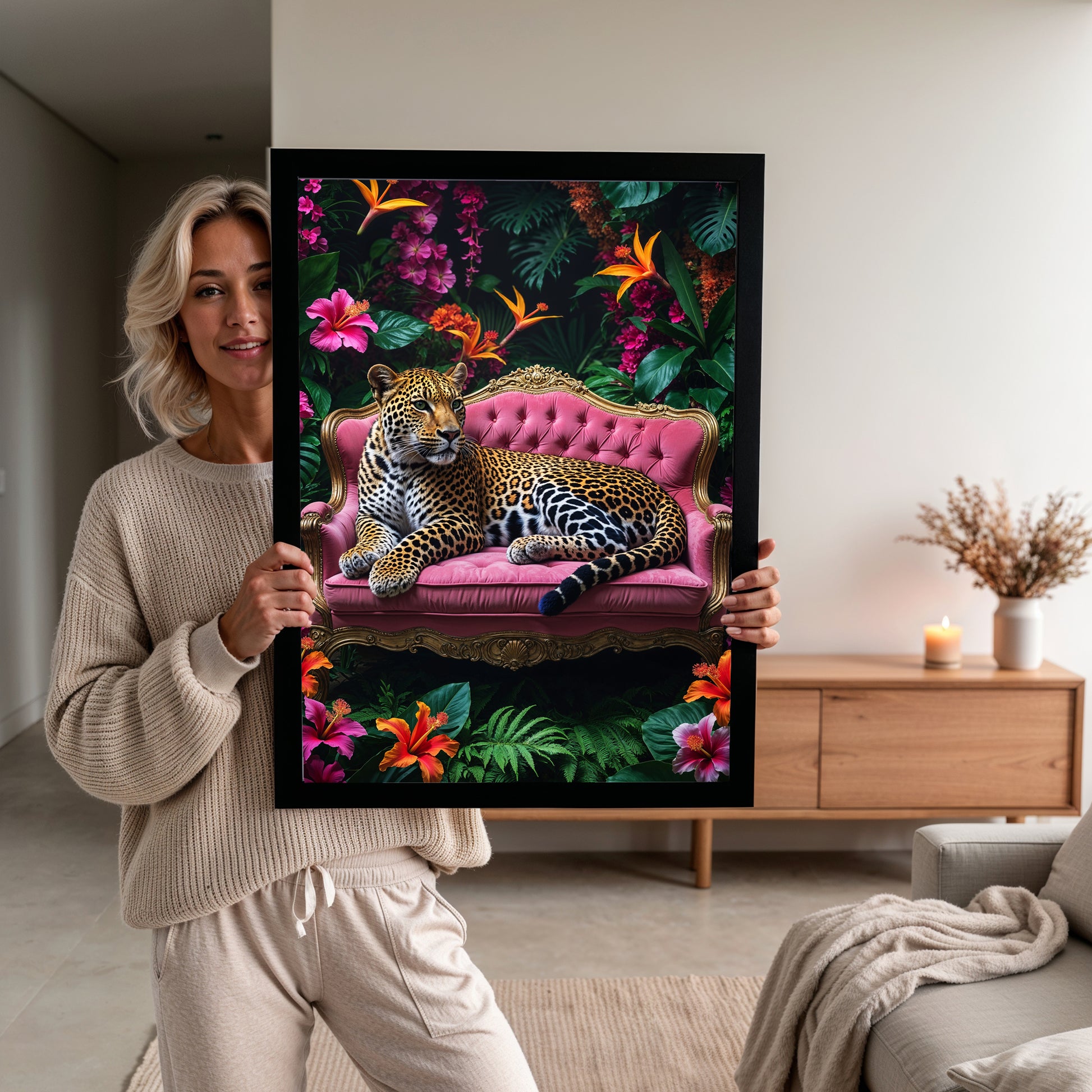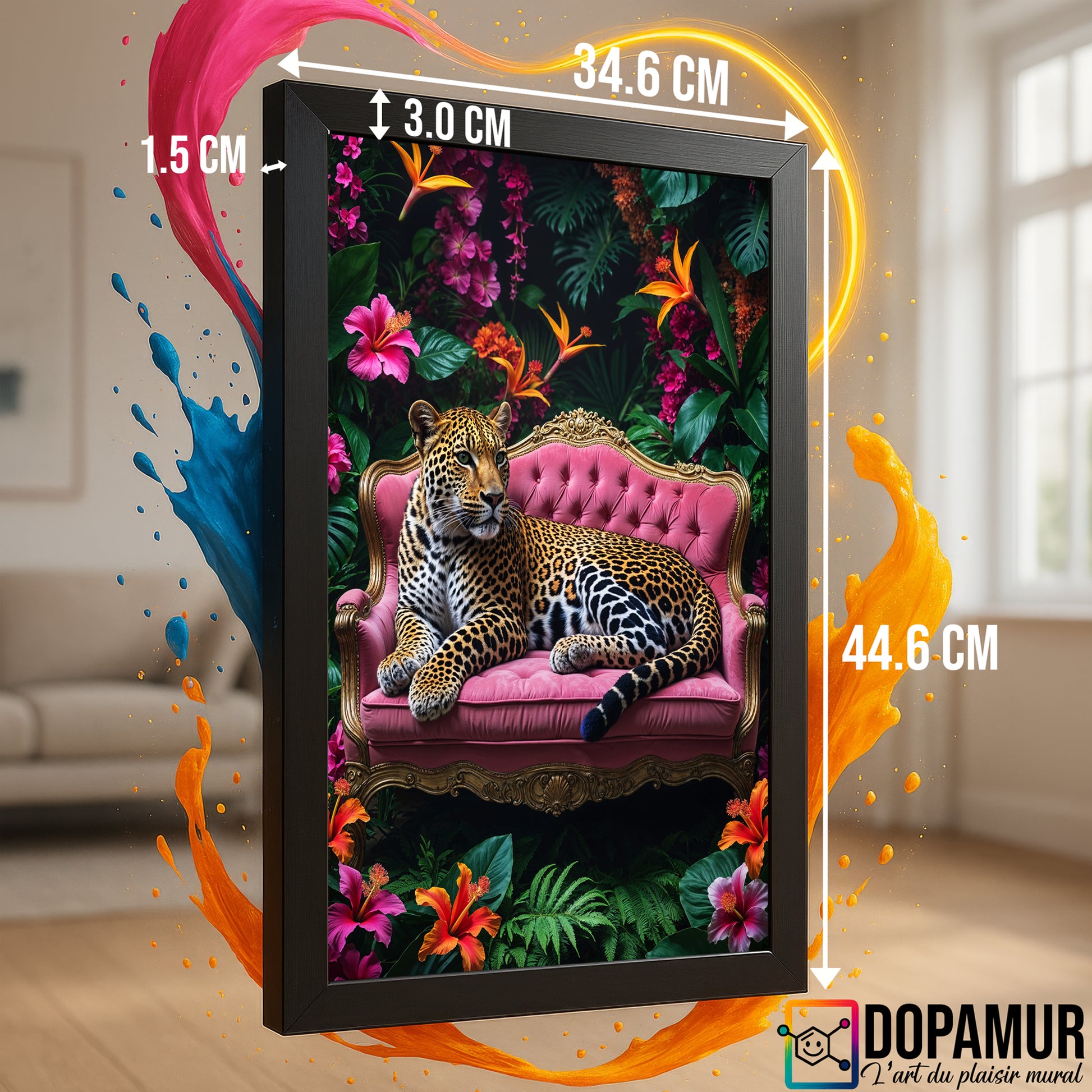 Osez un règne audacieux et raffiné avec ce tableau qui réinvente les codes du luxe, signé Dopamur. Cette pièce unique installe la souveraineté sauvage d'un léopard sur un trône de velours rose, créant un choc visuel d'une élégance absolue. La composition somptueuse et les couleurs profondes parlent d'audace et de caractère. Parfaite pour devenir le point focal d'un intérieur contemporain qui assume son originalité, cette œuvre apporte une touche de théâtre et de prestige. Pour les amateurs de décoration qui aiment surprendre avec classe, ce tableau incarne l'esprit Dopamur : l'art qui ose le contraste et couronne la singularité.